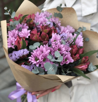Наши флористы создают уникальные композиции, гармонично сочетая альстромерию с другими цветами: